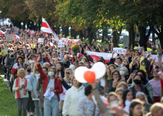 Minskā notiek sieviešu solidaritātes maršs, kurā aizturēti vairāki simti dalībnieču