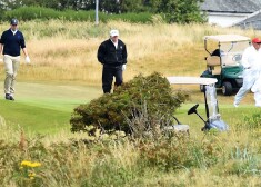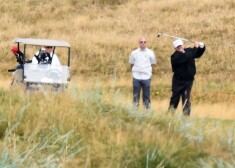 Tramps, kurš ceturtdien ieradās valsts vizītē Lielbritānijā, nedēļas nogali pavada viņam piederošā golfa kūrortā Skotijā.