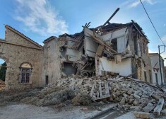 Sabrukušas mājas un cietušo meklēšana pēc spēcīgās zemestrīces, kas satricinājusi Grieķiju un Turciju