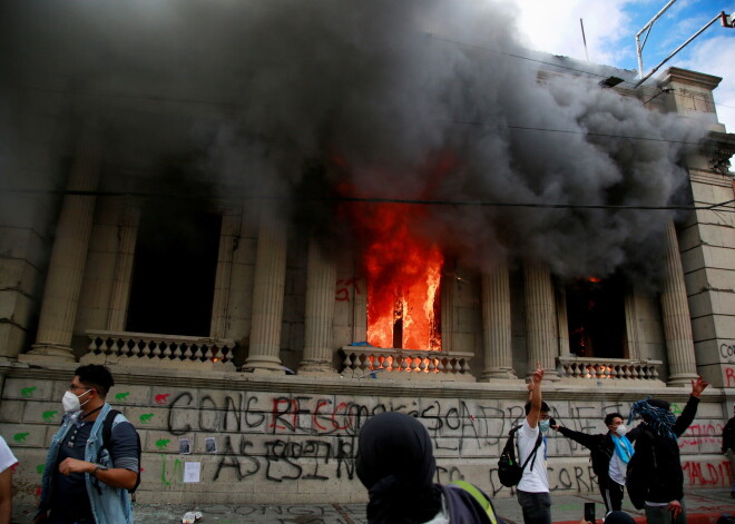 Gvatemalā protestētāji aizdedzina parlamenta ēku