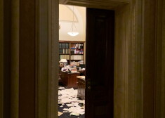 Postaža, ko Kapitolijā pēc ielaušanās aiz sevis atstājuši Trampa atbalstītāji