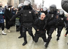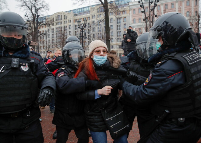 Navaļnija atbalstītāju protesti Krievijā: drošībnieki pret cilvēkiem daudzviet vērsušies ar rupju spēku