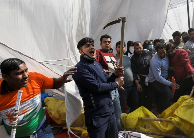 Kā miermīlīgs zemnieku protests Indijā pārtapa grautiņos ar zobeniem un stekiem