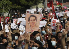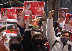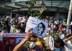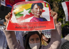 Tūkstošiem cilvēku Mjanmā protestē pret armijas sarīkoto valsts apvērsumu