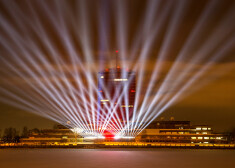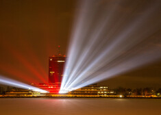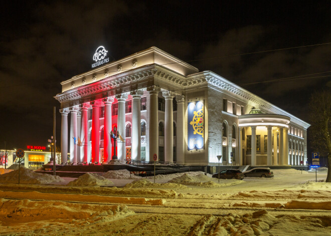 Vairākas ēkas Rīgā izgaismo Baltkrievijas neatkarības karoga krāsās