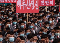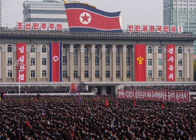 Ziemeļkorejā tūkstošiem cilvēku mītiņā Kima Irsena laukumā Phenjanā pirmdien bija redzami ar maskām uz sejas atšķirībā no militārās parādes divas ...