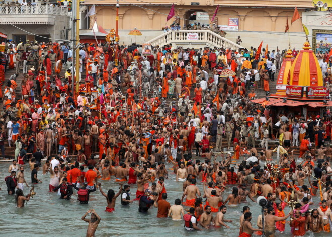 Desmitiem tūkstoši cilvēku Indijā pirmdien pulcējušies Utarakhandā, lai iegremdētos svētās Gangas upes ūdeņos, kamēr valsti turpina plosīt Covid-19. Hinduistu ...