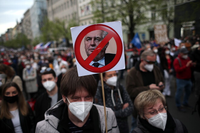 Ceturtdien Prāgas centrā sapulcējušies aptuveni 10 000 cilvēku protestā pret Čehijas prezidenta Miloša Zemana promaskavisko politiku.