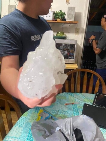 One of many giant hail stones that came through the roof of my friend’s house this evening in Sabinal, Texas. @NWSSanAntonio @IanShelton1997 @TxStormChasers @Justin_Horne @ReedTimmerAccu #eWXspotter pic.twitter.com/SGO7u8VcLi