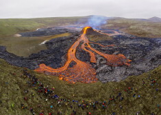 Bīstams, bet tik skaists! Tūristu straumes plūst pretī ugunīgajai vulkāna lavai Islandē