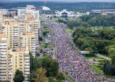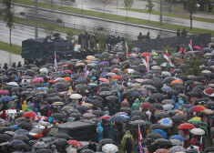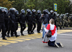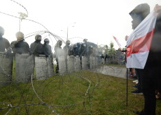 Iespaidīgi skati Minskā: policisti no protestētājiem sargā prezidenta pili