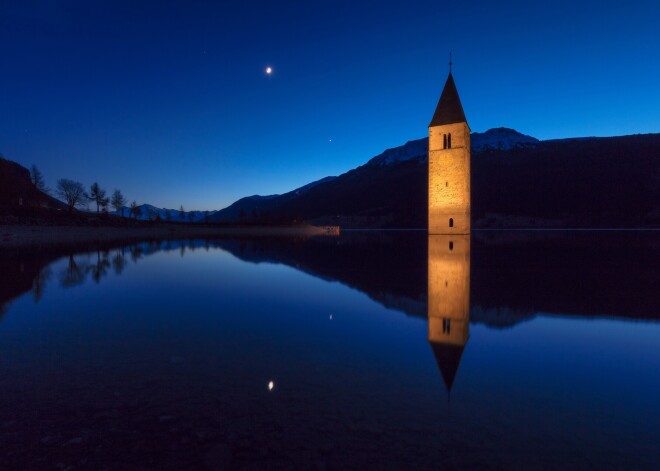 Atjaunošanas darbu rezultātā Resijas ezerā Itālijā cilvēku skatam atklājies pirms vairākiem gadu desmitiem nogremdēts ciemats ar zvanu torni pašā ezera vidū.