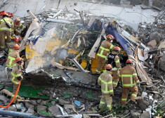 Dienvidkorejā nojaucamas ēkas gruveši sadragā autobusu; gājuši bojā 9 pasažieri