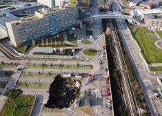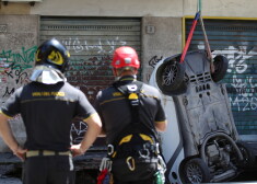 Milzu nogruvums Neapolē pie Covid-19 slimnīcas "aprij" vairākas automašīnas
