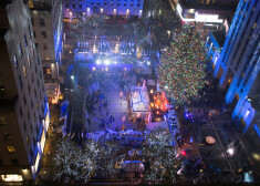 Rokfellera centrā Ņujorkā iededz Ziemassvētku eglīti