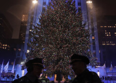 Desmitiem tūkstošu cilvēku Ņujorkā pulcējās ikgadējā Rokfellera centra Ziemassvētku egles iedegšanas ceremonijā.