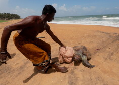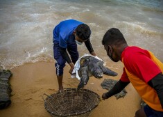 Šrilankas pludmalēs vāc izskaloto bruņurupuču mirstīgās atliekas [Brīdinām, nepatīkami skati!]