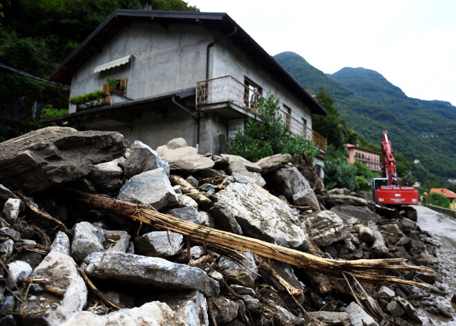 Itālijas ziemeļus skar plūdi: pie Komo ezera vietējie cīnās ar dubļu nogruvumiem