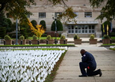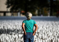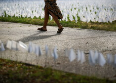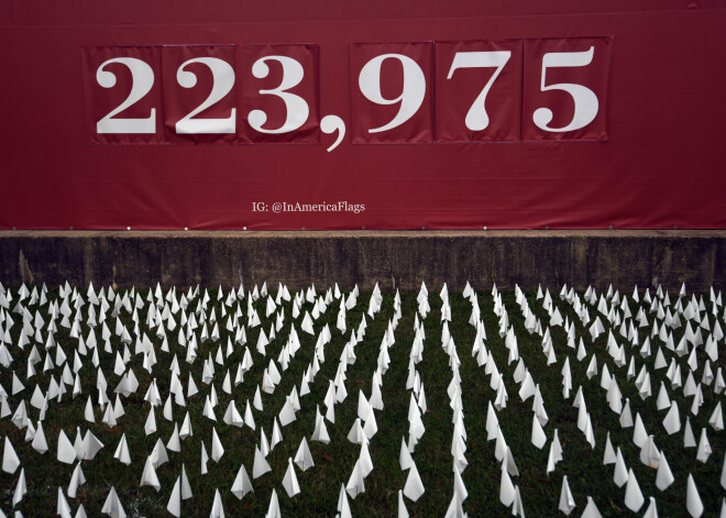 Covid-19 upuru piemiņai izveido mākslas instalāciju "Amerikā: kā gan tas varēja notikt"