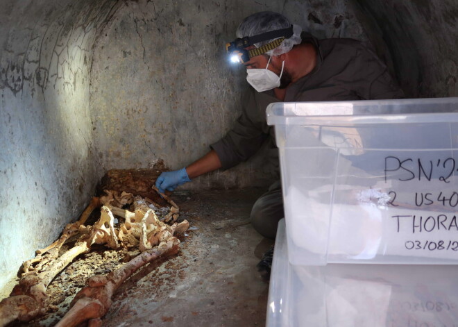 Senās Romas Pompeju pilsētā, kas 79. gadā tika iznīcināta vulkāna izvirduma laikā, atrastas daļēji mumificējušās cilvēka mirstīgās atliekas. Arheologi min, ...