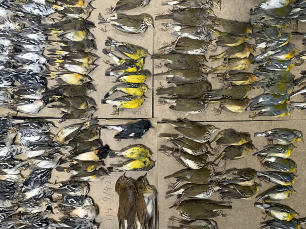 Some of the 226 dead birds I picked up this morning while window collision monitoring for @NYCAudubon. 205 from @3NYWTC and @4WTC alone. Many others swept up, inaccessible, or too mangled to collect. 30 injured to @wildbirdfund. If you’re in NYC today, be careful where you step. pic.twitter.com/RTjm82NIpy