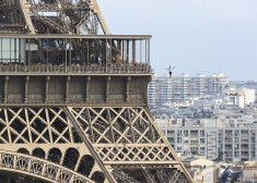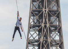 Francūzis šķērso Sēnas upi pa virvi 70 metru augstumā