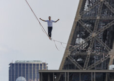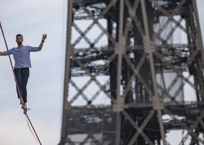 “Tas bija skaisti,” par savu bravūrīgo piedzīvojumu teica Neitans Paulins, kurš par godu Francijas mantojuma dienai šķērsoja Sēnas upi Parīzē pa virvi 70 metru augstumā.