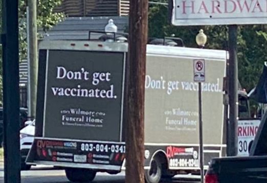 Gan Ziemeļkarolīnas iedzīvotāju, gan sociālo tīklu lietotāju uzmanību pievērsusi kāda apbedīšanas biroja reklāma, kas aicina nevakcinēties.