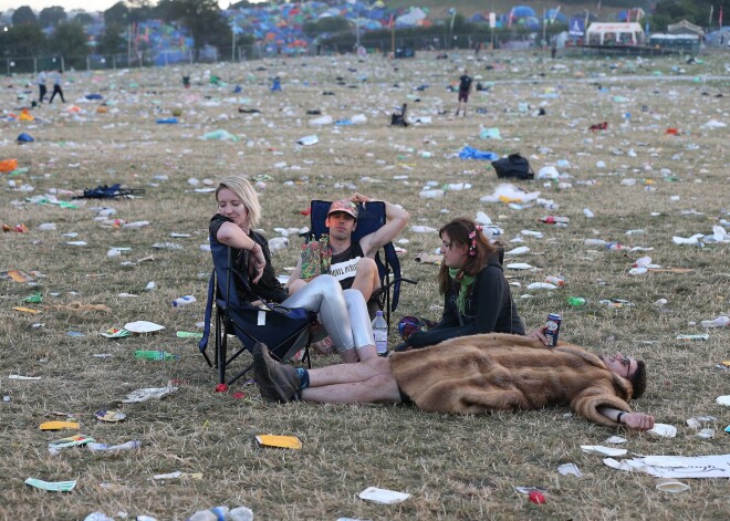 Šorīt darbu Glāstonberijas festivāla norises vietā sāka apkopēji un atkritumu savācējmašīnas - noslēdzies viens no slavenākajiem mūzikas festivāliem, un visapkārt ...
