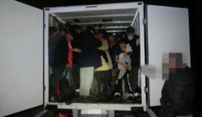 "Migranti, arī četri nepilngadīgie, ceļoja pārblīvētās telpās un necilvēcīgos apstākļos, un viņi bija spiesti jumtā izsist vairākus caurumus, lai viņiem būtu, ko elpot," norādīja policija, pieļaujot, ka policijas rīcības rezultātā novērsta potenciāla traģēdiju.