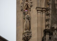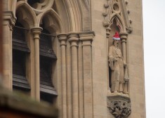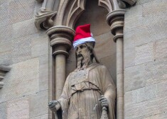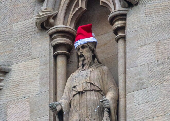Noslēpumainais palaidnis uz Kembridžas Universitātes Svētā Jāņa koledžas ēkas esošās figūras ietērpis sarkanās Ziemassvētku vecīša cepurītēs. Neparasto skatu iemūžinājis fotogrāfs ...
