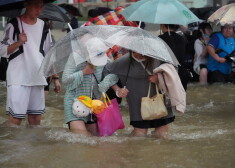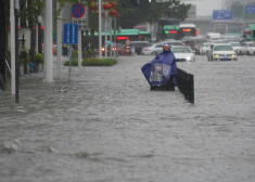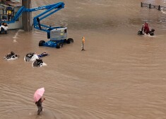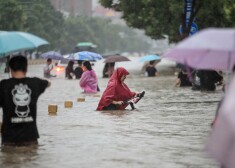Spēcīgas lietusgāzes Ķīnas vidienes pilsētā Džendžovā ielas pārvērtušas par upēm