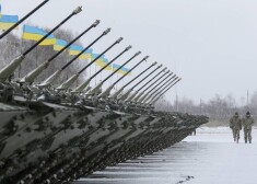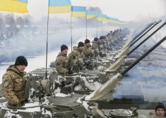Ukrainas prezidents Petro Porošenko Ukrainas armijai nodod militāro tehniku