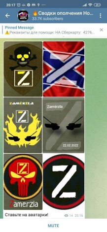 Tikmēr sociālajos tīklos, īpaši “Telegram”, eksistē vairākas saziņas grupas, kurās biedrojas Donbasā izveidoto separātistu “republiku” pārstāvji un atbalstītāji, kuri ar sajūsmu “Z” simbolu izplata kā tādu noslēpumainu pazīšanās zīmi: