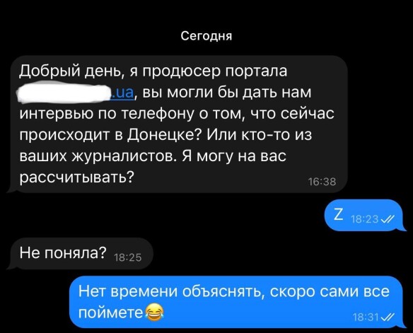 Tajā persona žurnālistei atbild vienkārši ar “Z”, uz ko mediju pārstāve piebilst, ka nav sapratusi šādu atbildi.