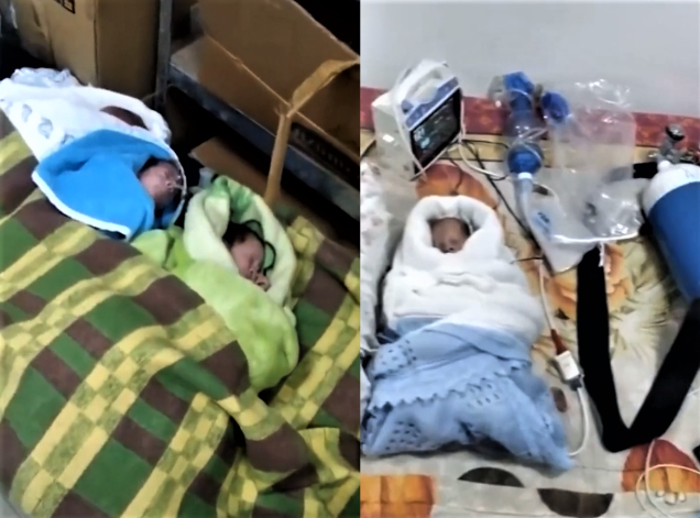 Zīdaiņiem ar apgrūtinātu elpošanu manuāli tiek pievadīts skābeklis.