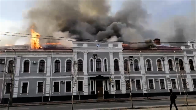 🇷🇺🇺🇦⚡ In Chernihiv, the building of the regional department of the Ukrainian intelligence agency SBU is on fire. #UkraineRussia pic.twitter.com/KgC8NAyPYQ