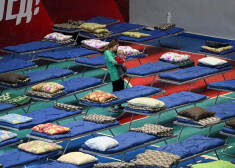 Bēgļu centrs Polijā, kurā patveras no Ukrainas ieceļojušie