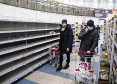 Veikali Ukrainas galvaspilsētā Kijivā - kara pirmajā dienā 2022. gada 24. februārī un dažas dienas vēlāk