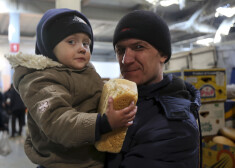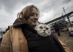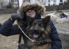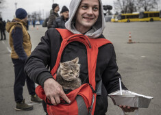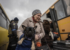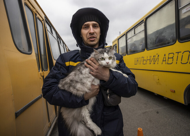 Ukrainas pilsētas Bučas iedzīvotāji evakuējas kopā ar četrkājainajiem mīluļiem - suņiem un kaķiem