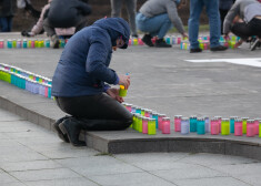 Šodien no plkst.19.30 līdz 21 Latvijas Nacionālās operas priekšlaukumā cilvēki nolika sveces, pieminot Ukrainā notiekošā kara noziegumu upurus.