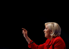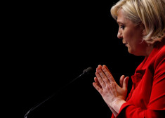Francijas galēji labējās "Nacionālās Frontes" (FN) līdere un prezidenta amata kandidāte Marina Lepēna rīkoja pirmsvēlēšanu mītiņu un solīja Eiropas Savienības ...