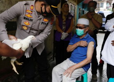 Cilvēki Indonēzijā vakcinējas, lai par brīvu dabūtu vistu