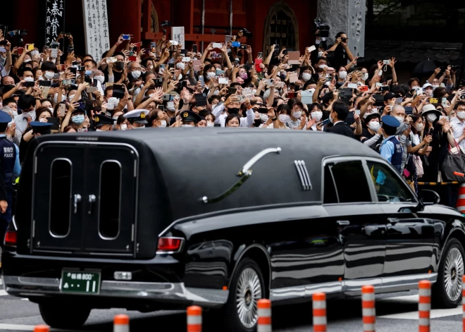 Tūkstoši sērās atvadās no nogalinātā Japānas ekspremjera Abes