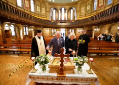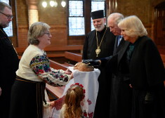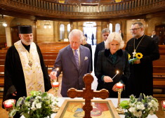Princis Čārlzs un hercogiene Kamilla apmeklē Ukraiņu katoļu katedrāli Londonā