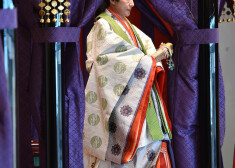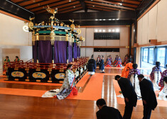 Smalku viesu klātbūtnē tronī kāpj Japānas imperators un imperatrise