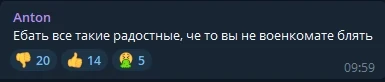 “Je** visi tādi priecīgi, ko tad nestāvat pie kara komisariāta bļ**,” retoriski vaicā kāds cits: