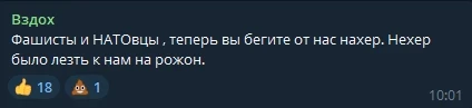“Fašisti un “NATO-isti”, tagad bēgat no mums na**r. Ņe**** bija līst mūsu virzienā,” motivēts ir kāds no komentētājiem.
