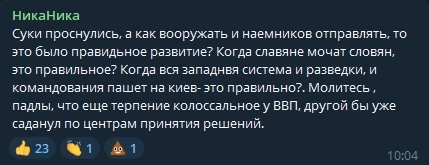 Kāds cits līdzīgi domājošs lietotājs norāda, ka nu Rietumi var sākt lūgties un vispār – ir jābūt pateicīgiem, ka Krievija ir tik savaldīga un nav sabombardējusi “lēmumu pieņemšanas centrus”: