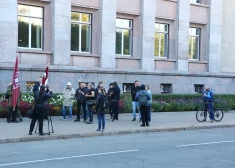 Pie Ministru kabineta šodien norisinās protests pret krievijas pilsoņu ielaišanu Latvijā. Mītiņā pulcējās daži desmiti cilvēku.